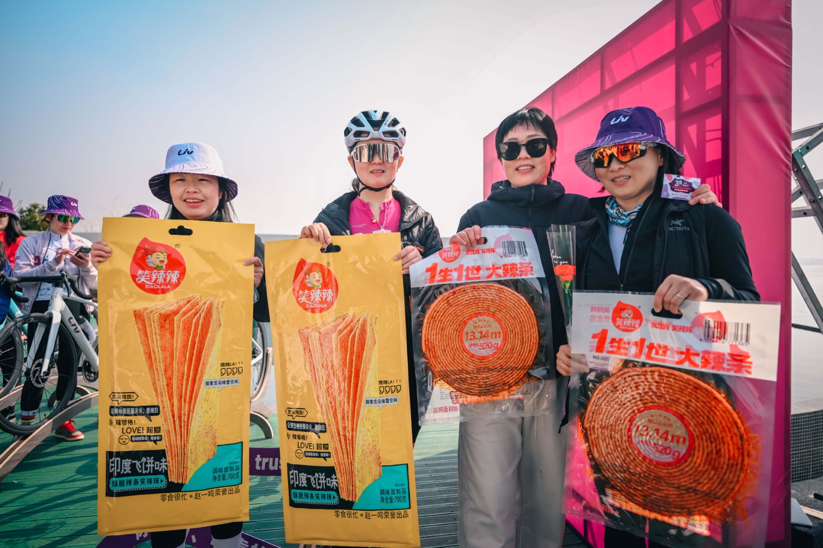 ▫️发车仪式上,小姐姐们手持辣条摆出超酷 pose,秒变 "辣力骑士"